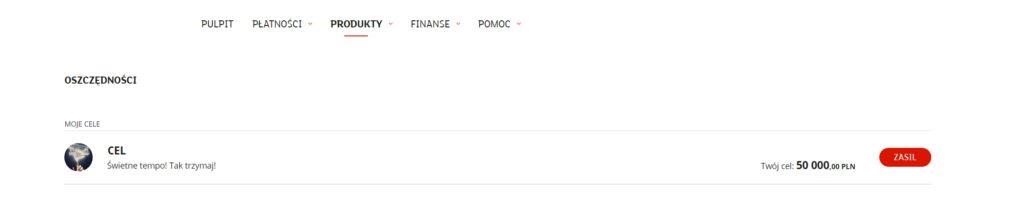 • Otworzyć cel oszczędnościowy i posiadać na nim odłożone minimum 50 zł ostatniego dnia miesiąca, następującego po miesiąca otwarcia konta. Rachunki Moje Cele to tak naprawdę konta oszczędnościowe, służące do regularnego oszczędzenia. Aby spełnić ten warunek otwórz taki cel (jeśli nie zrobiłeś tego w procesie zakładania konta) i wpłać na niego minimum 50 zł i nie wypłacaj do momentu otrzymania premii.