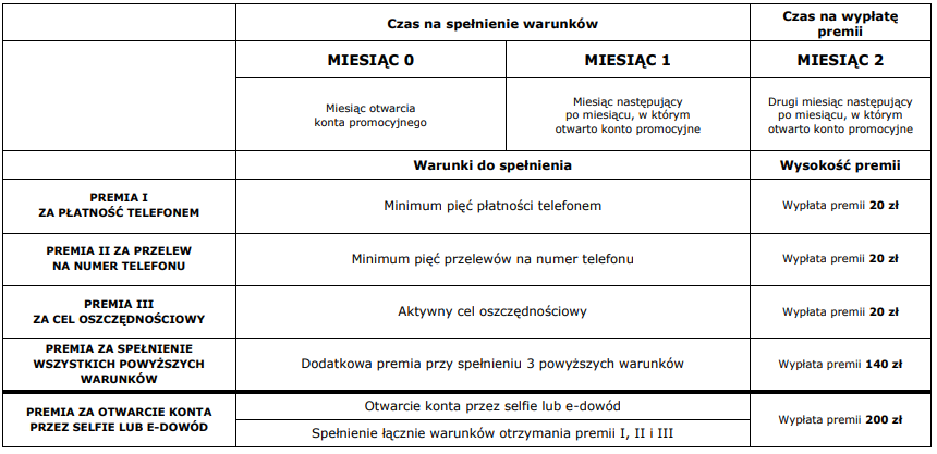 Aby otrzymać w sumie 400 zł przelewem na konto, w miesiącu otwarcia konta lub w kolejnym, następującym po miesiącu otwarciu konta musisz: