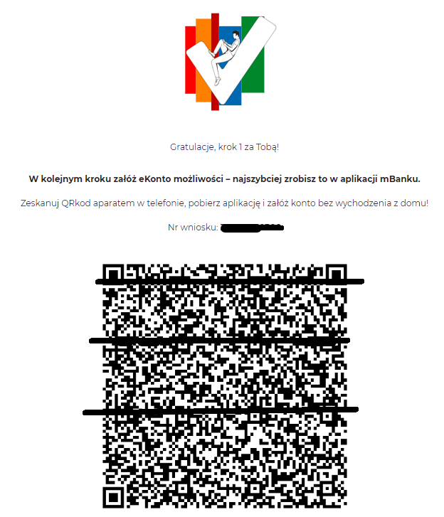 Gdybyś potrzebował pomocy z procesem zakładania konta to mBank przychodzi Ci z pomocą. Tutaj znajduje się interaktywny film, który Ci to ułatwi. Filmik jest sprzed ponad roku, więc niektóre czynności delikatnie różnią się kolejnością, jednak schemat jest ten sam. Pamiętaj, że na filmie wybierane jest eKonto osobiste. Ty musisz wybrać eKonto możliwości.