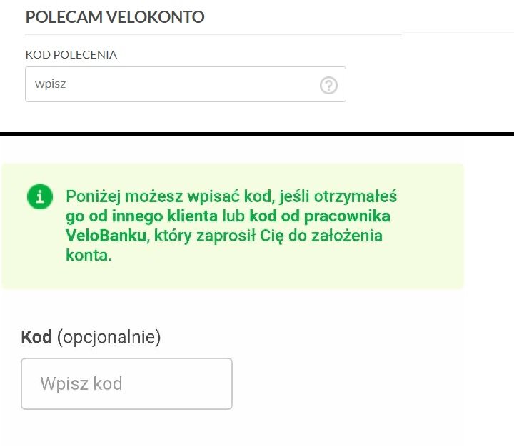 Wejdź na tę specjalną stronę promocji i złóż wniosek o VeloKonto wraz z VeloSkarbonką. Przed wejściem na stronę koniecznie wyłącz AdBlock’a oraz zaakceptuj pliki cookies na stronie. Zapewni to prawidłowe zapisanie Cię do promocji. Konto możesz otworzyć metodą na selfie, poprzez aplikację mObywatel albo za pośrednictwem kuriera. Koniecznie wyraź wymagane zgody marketingowe oraz wpisz kod polecenia! O szczegółach piszemy niżej. Pamiętaj, wpisanie kodu polecenia zagwarantuje Ci dodatkowe 50 zł. Nie chcemy, abyś o tym zapomniał, także już teraz podajemy Ci nasz kod FW4CP8.