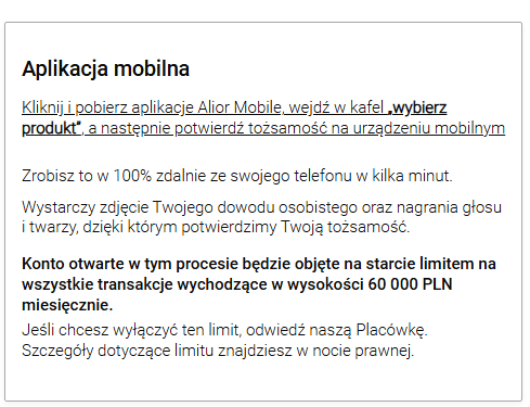 W promocji mogą wziąć udział osoby pełnoletnie, posiadające polski dowód osobisty, które w ciągu ostatnich 3 lat przed złożeniem wniosku nie miały konta osobistego w Aliorze, w tym również konta w T-Mobile Usługi Bankowe.