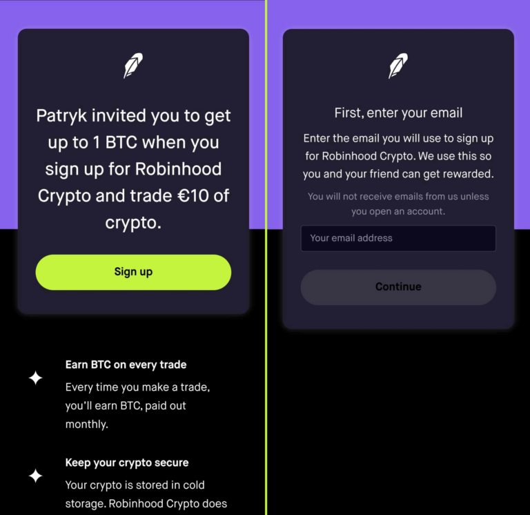 Czym dokładnie jest Robinhood piszemy poniżej. Gwarantowany bonus pojawi się na Twoim koncie od razu. Wystarczy, że bez prowizji wymienisz kryptowalutę doładujesz konto! Jest to spore ułatwienie względem poprzedniej edycji. Nie musisz trzymać wpłaconej kwoty przez określony czas. Możesz od razu ją wypłacić. Bonus z kolei chwilę musi odleżeć, Robinhood musi nacieszyć się nowym klientem . Aby otrzymać całą premię musisz zarejestrować się ze specjalnego linku z zaproszeniem. Możesz od razu przejść do działania przechodząc na poniższą stronę.